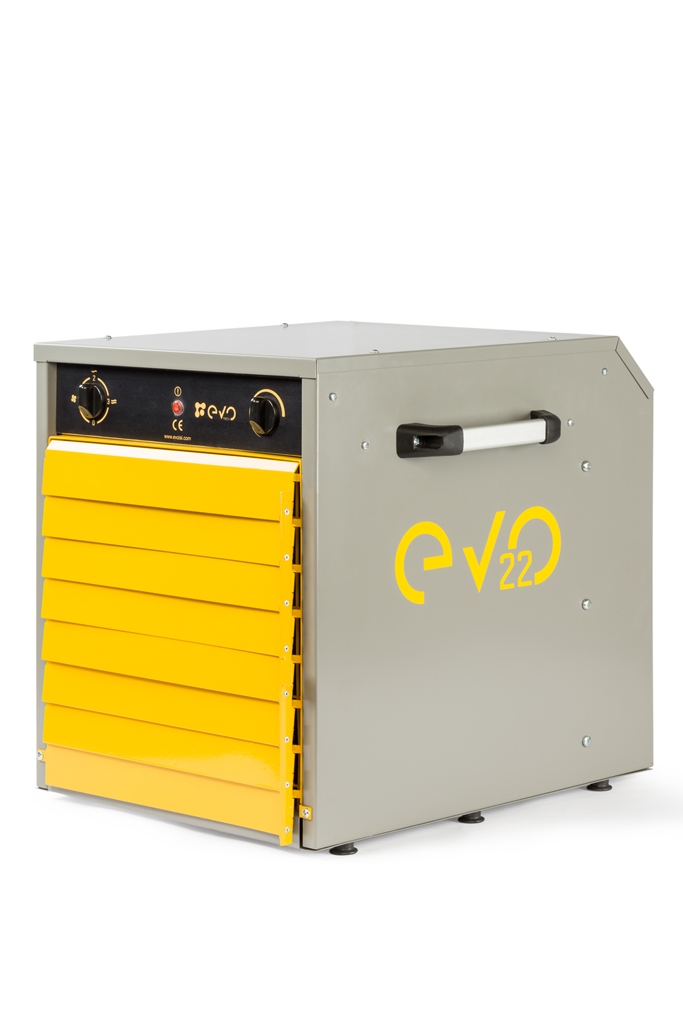 Evo 22 ısıtıcımız kutu kasa tipi bir ısıtıcıdır. Kutu kasa modelleri içerisindeki en güçlü ürünümüz; 130 metre kare ile 300 metre kare arasındaki alanlar için üretilmiştir. Bu alanlar içerisindeki verimliliğinin çok daha etkin olduğu yapılan testler sonucunda ortaya konmuştur. Elektrikli bir sisteme sahip olan ısıtıcının tercih edilmesindeki en önemli faktörlerden birisi de mobil olması ve 75.000 btu üzerinde ısıtıma kapasitesine sahip olması, iç ortamda ısıttığı havayı tekarar ısıtmasından ötürü ısıtılması istenilen alanın ısınmasına hızlı sonuçlar vermektedir.